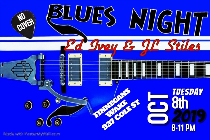« All Events This event has passed. Blues Night with Ed Ivey and JL Styles October 8, 2019 @ 8:00 pm - 11:00 pm Trumer Pils Custom Etched Glass Event » + Google Calendar+ iCal Export Details Date: October 8, 2019 Time: 8:00 pm - 11:00 pm Event Category: Music Venue Finnegans Wake 937 Cole Street San Francisco, CA 94117 + Google Map Phone: 4157316119